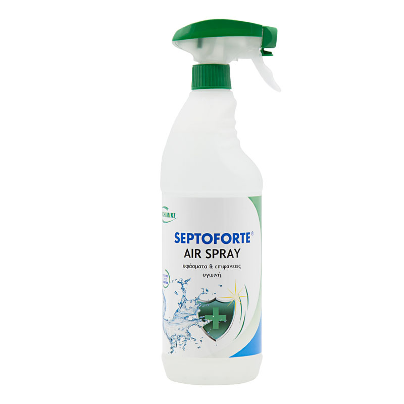 Το SEPTOFORTE AIR SPRAY είναι εξυγιαντικό σπρέι, έτοιμο προς χρήση, κατάλληλο για υφάσματα & επιφάνειες (π.χ. σε έπιπλα & αυτοκίνητα). Κατάλληλο και για φίλτρα Air Condition.
