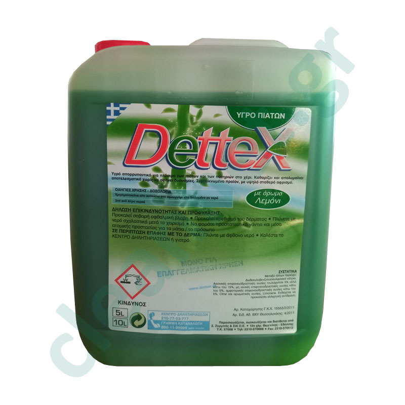 Το υγρό πιάτων DETTEX είναι ένα ισχυρό, συμπυκνωμένο προϊόν με ουδέτερο PH και υψηλό αφρισμό. Δρα γρήγορα και αποτελεσματικά προσφέροντας πιάτα και ποτήρια καθαρά χωρίς κατάλοιπα, ίχνη, μικρόβια και δυσοσμίες.