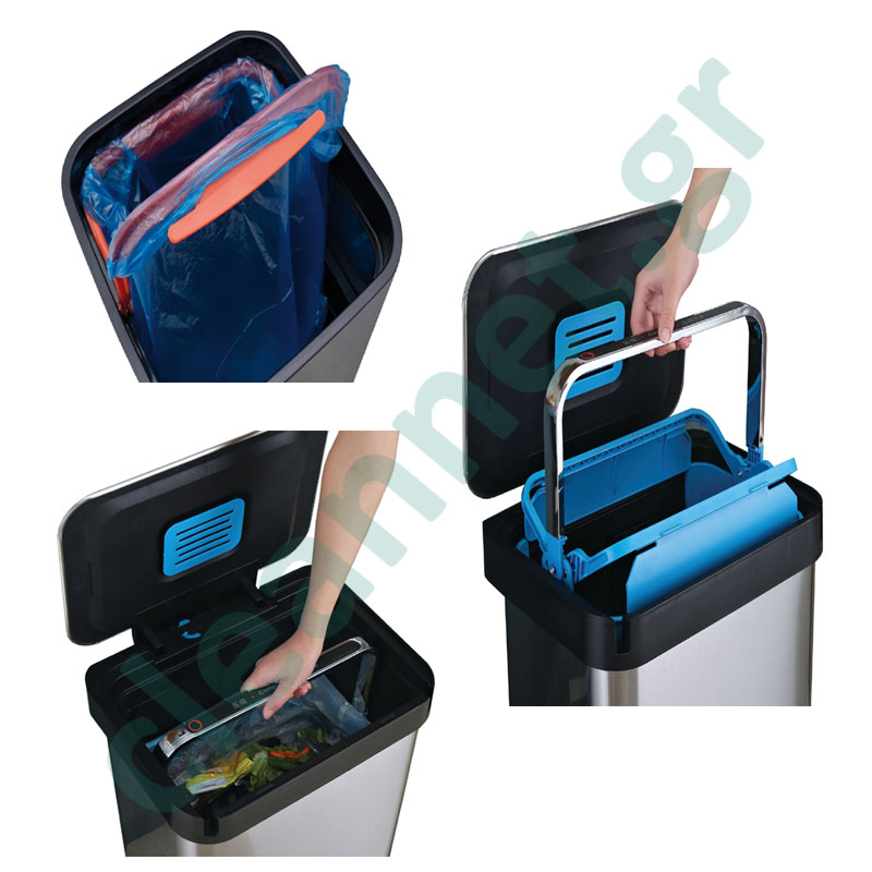 Ανοξείδωτος κάδος απορριμμάτων με πεντάλ και πρέσα, χωρητικότητας 25lt.