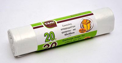 Σακούλες απορριμμάτων σε ρολό λευκές 50*50. Το ρολό περιέχει 20 τεμ. Στην τιμή δεν περιλαμβάνεται ο Φ.Π.Α.