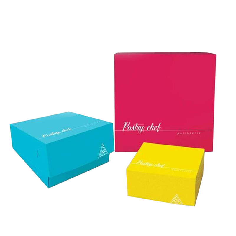 Κουτιά ζαχαροπλαστείου Pastry Chef σε έντονα χρώματα και ανάγλυφο τύπωμα. Διατίθεται με το κιλό σε πολλά μεγέθη (2,4,6,8,10,15 &30) και τρία χρώματα: κίτρινο (Νο 2 & 4), γαλάζιο (Νο 6, 8 & 10) και ροζ (Νο 15 & 30).