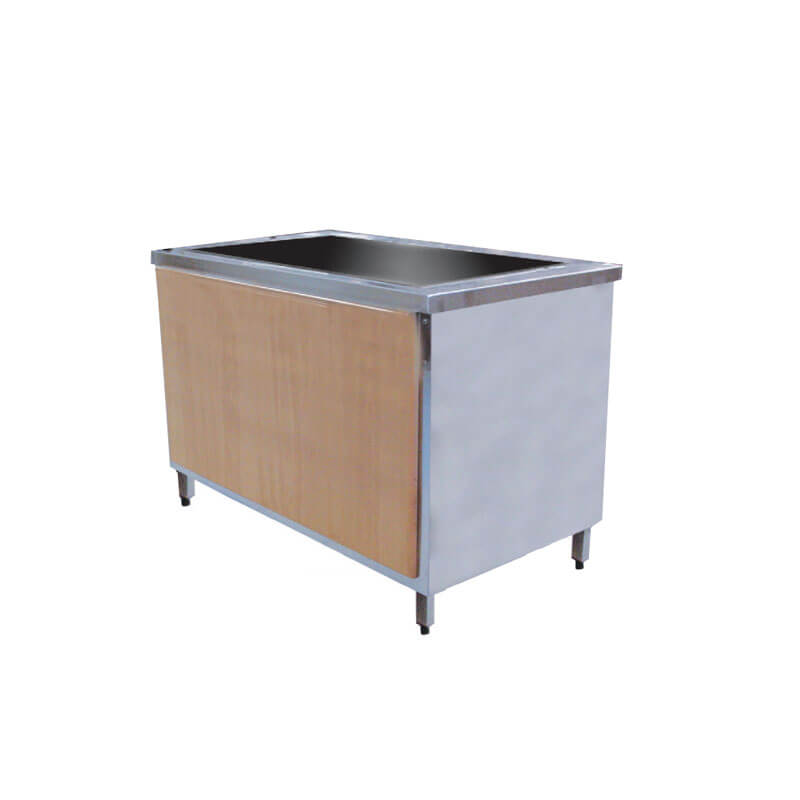 Ο ψυχόμενος αυτός πάγκος σερβιρίσματος έχει υποδοχές για γαστρονόμους 1/1 και θάλαμο ψύξης και είναι ιδανικός για catering. Ο ψυχόμενος πάγκος σερβιρίσματος είναι ανοξείδωτος και διακοσμημένος στην πρόσοψη με ξύλινη επιφάνεια.