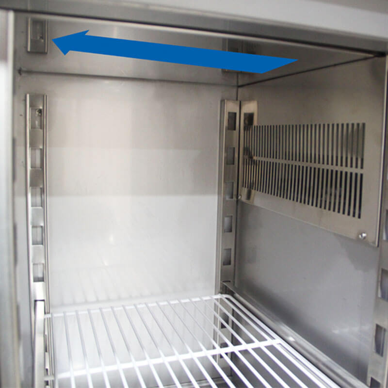 - Η κατάψυξη πάγκος έχει βελτιωμένη κυκλοφορία αέρα. Νέος ειδικά σχεδιασμένος αεραγωγός εσωτερικού χώρου για καλύτερη κυκλοφορία και διανομή ψυχρού αέρα.