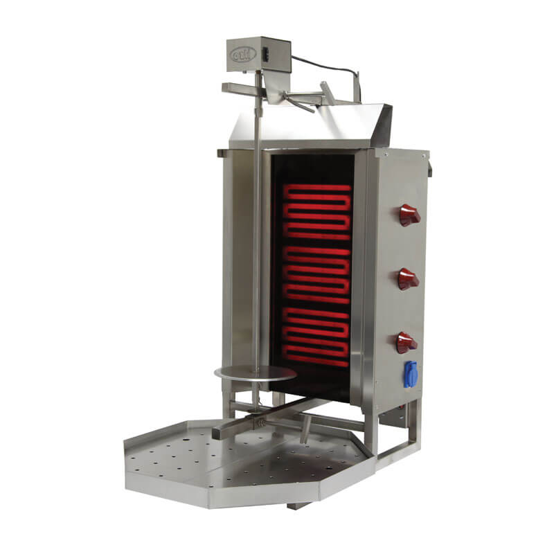 - Το διπλό σύστημα της μηχανή γύρου επιτρέπει στο κρέας να ψηθεί ομοιόμορφα, είτε βρίσκεται κοντά, μακριά ή υπό γωνία σε σχέση με τους καυστήρες.