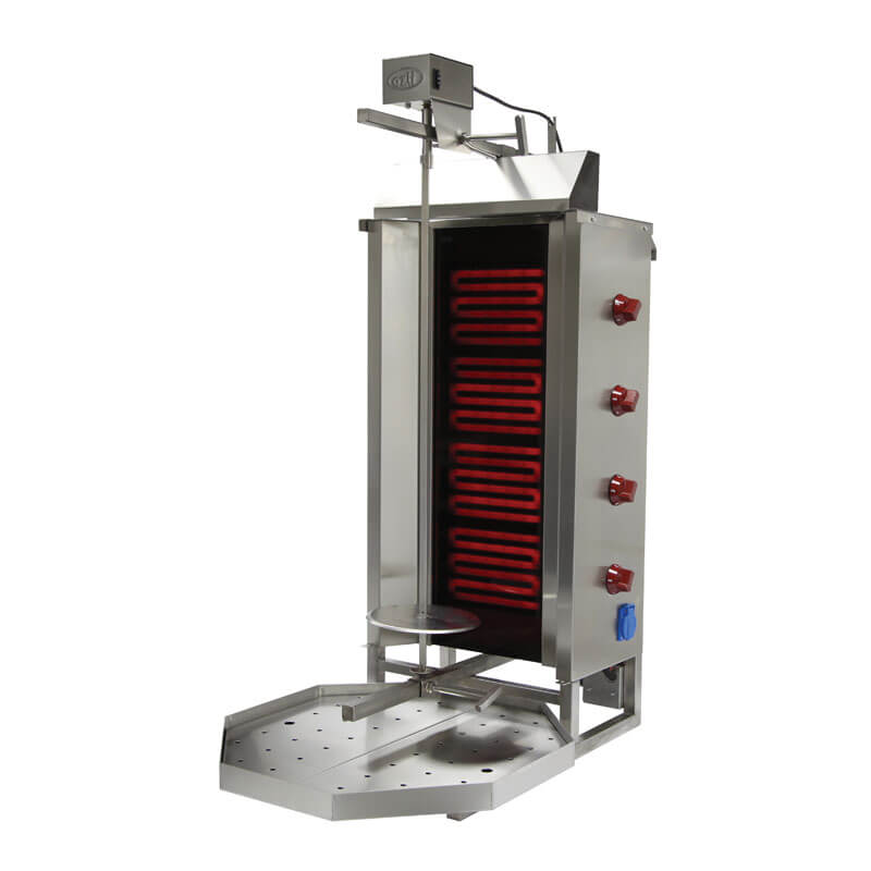 - Το διπλό σύστημα της μηχανής γύρου επιτρέπει στο κρέας να ψηθεί ομοιόμορφα, είτε βρίσκεται κοντά, μακριά ή υπό γωνία σε σχέση με τους καυστήρες.