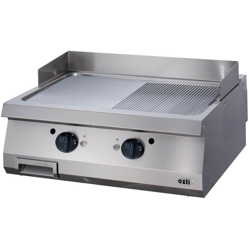- Επιλογή επιφανειών ψησίματος: λεία, με ραβδώσεις ή μισή μισή.