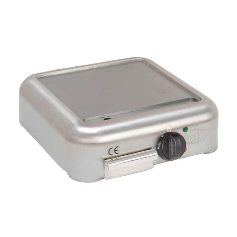 Πλατώ ψησίματος με λεία επιφάνεια για γρήγορο και τέλειο ψήσιμο. Η κατασκευή είναι από ανοξείδωτο και διαθέτει θερμοστάτη και ρυθμιστή θερμοκρασίας.