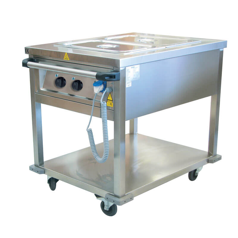Το φορητό αυτό Μπεν Μαρί είναι φτιαγμένο από ανοξείδωτο. Το Μπεν Μαρί έχει θέση για δύο γαστρονόμους 1/1 και ράφι αποθήκευσης. Το Μπεν Μαρί διαθέτει θερμοστάτη και ρυθμιστή θερμοκρασίας.