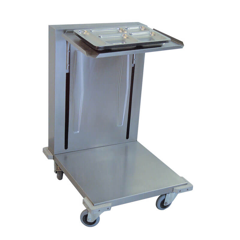 - Τρόλεϊ μεταφοράς δίσκων φαγητού για χώρους μαζικής εστίασης. Το τρόλεϊ μεταφοράς δίσκων είναι φτιαγμένο από ανοξείδωτο.