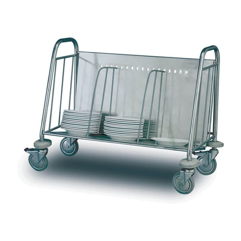 - Τρόλεϊ μεταφοράς πιάτων σε στοίβες. Αποτελεί ιδανική λύση για μεγάλες κουζίνες μαζικής εστίασης, καθώς ένα τρόλεϊ μεταφοράς πιάτων σε στοίβες μειώνει τον αριθμό των διαδρομών στρωσίματος του τραπεζιού.