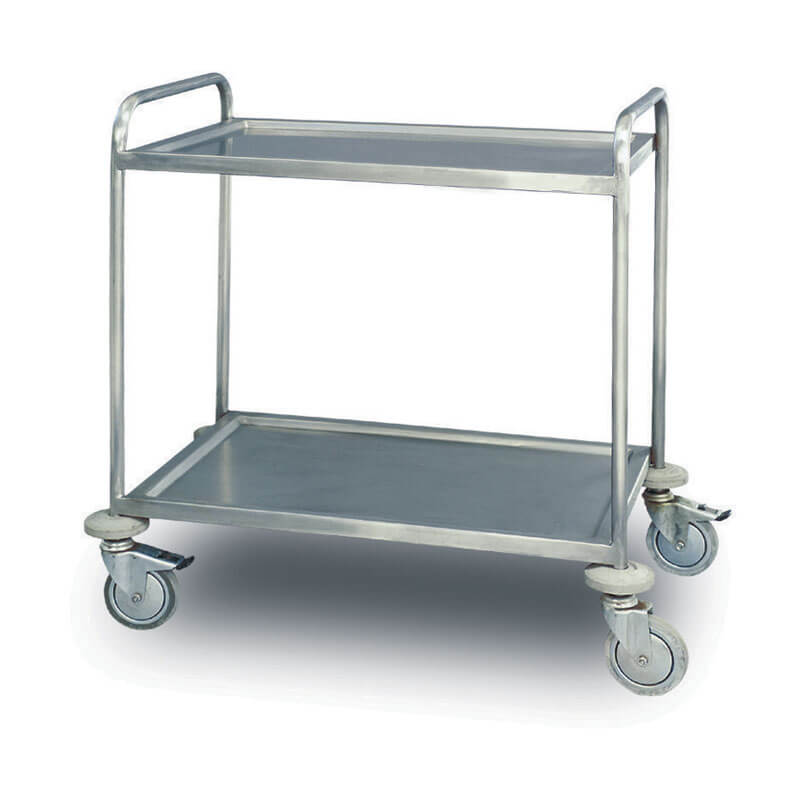 - Τρόλεϊ μεταφοράς τροφίμων και σερβιρίσματος με δύο ράφια. Αποτελεί ιδανική λύση για μεγάλες κουζίνες μαζικής εστίασης, καθώς ένα τρόλεϊ μεταφοράς με πολλά ράφια μειώνει τον αριθμό των διαδρομών σερβιρίσματος.