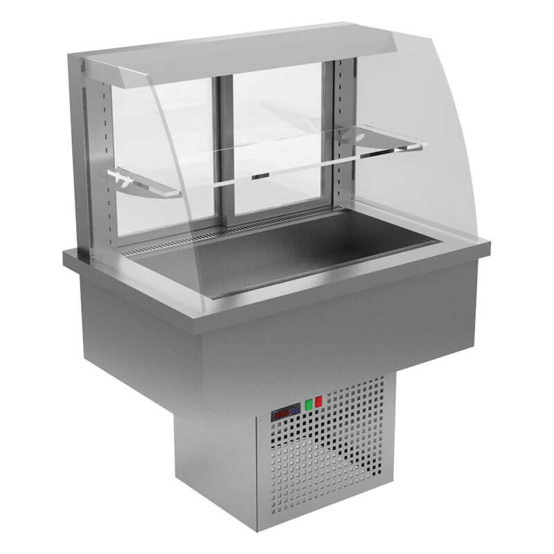 Εντοιχιζόμενη βιτρίνα με δυνατότητα ρύθμισης της θερμοκρασίας σε αρκετά χαμηλό επίπεδο ώστε να λειτουργεί ως ψυγείο. Η εντοιχιζόμενη αυτή βιτρίνα αποτελεί καλή λύση σε εστιατόρια self service.