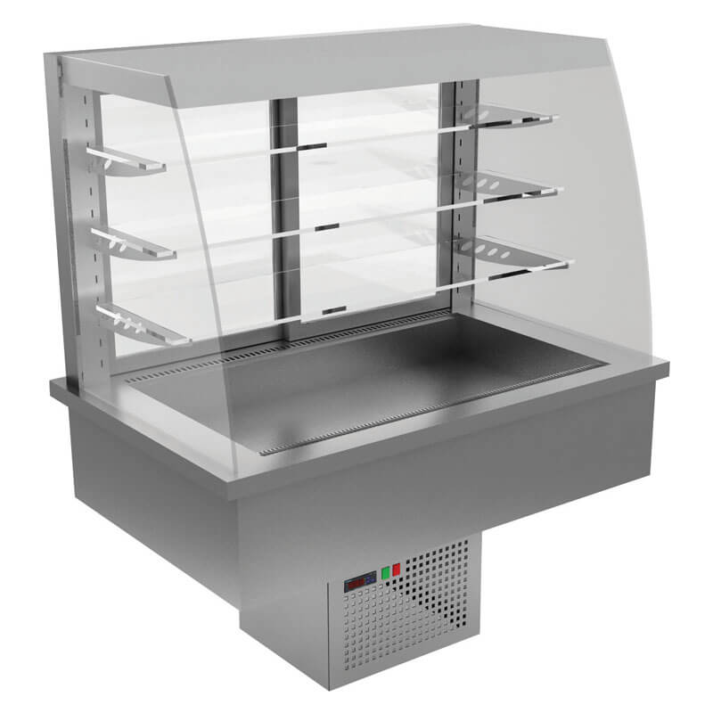 Εντοιχιζόμενη βιτρίνα με δυνατότητα ρύθμισης της θερμοκρασίας σε αρκετά χαμηλό επίπεδο ώστε να λειτουργεί ως ψυγείο. Η εντοιχιζόμενη αυτή βιτρίνα αποτελεί καλή λύση σε εστιατόρια self service.